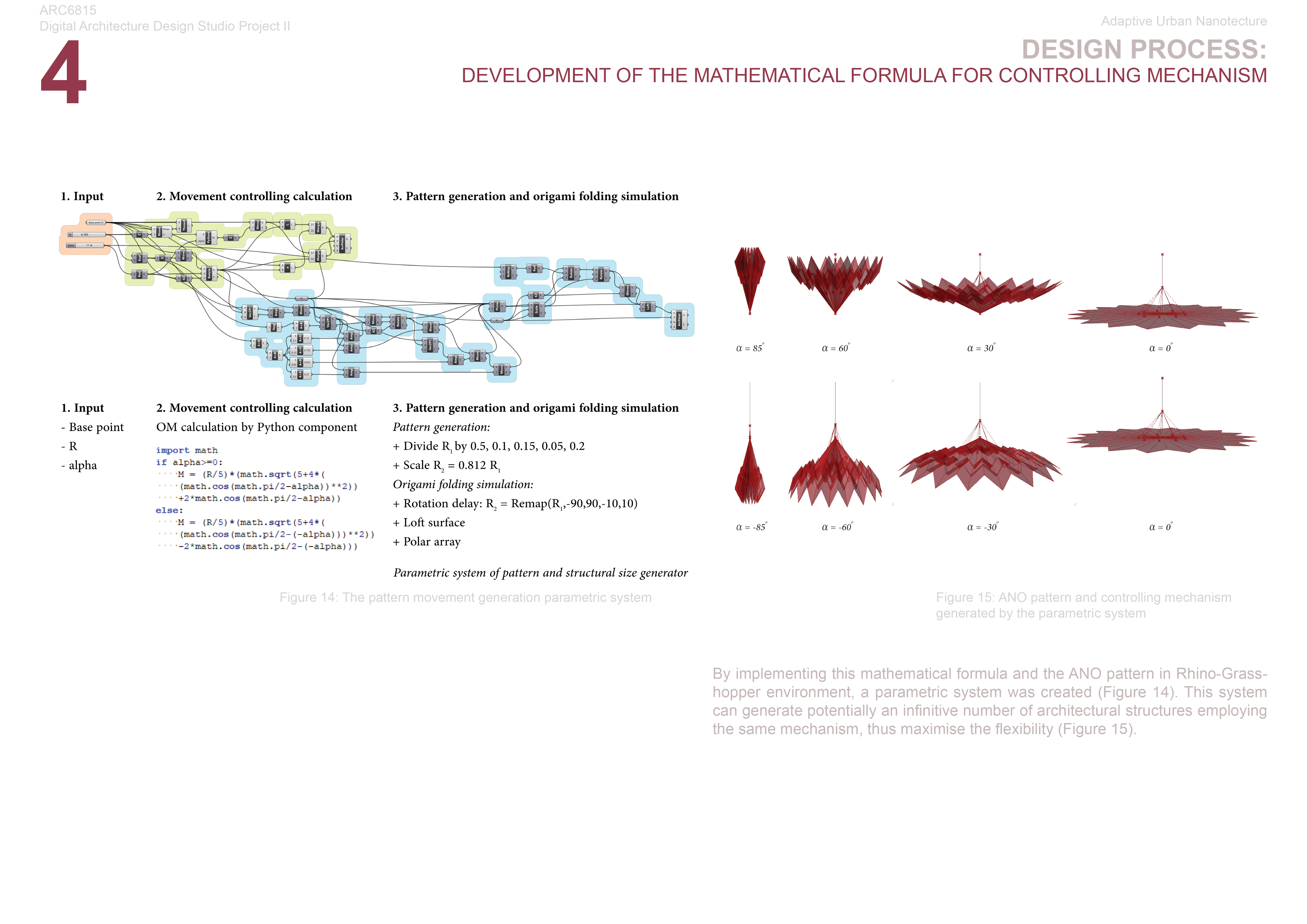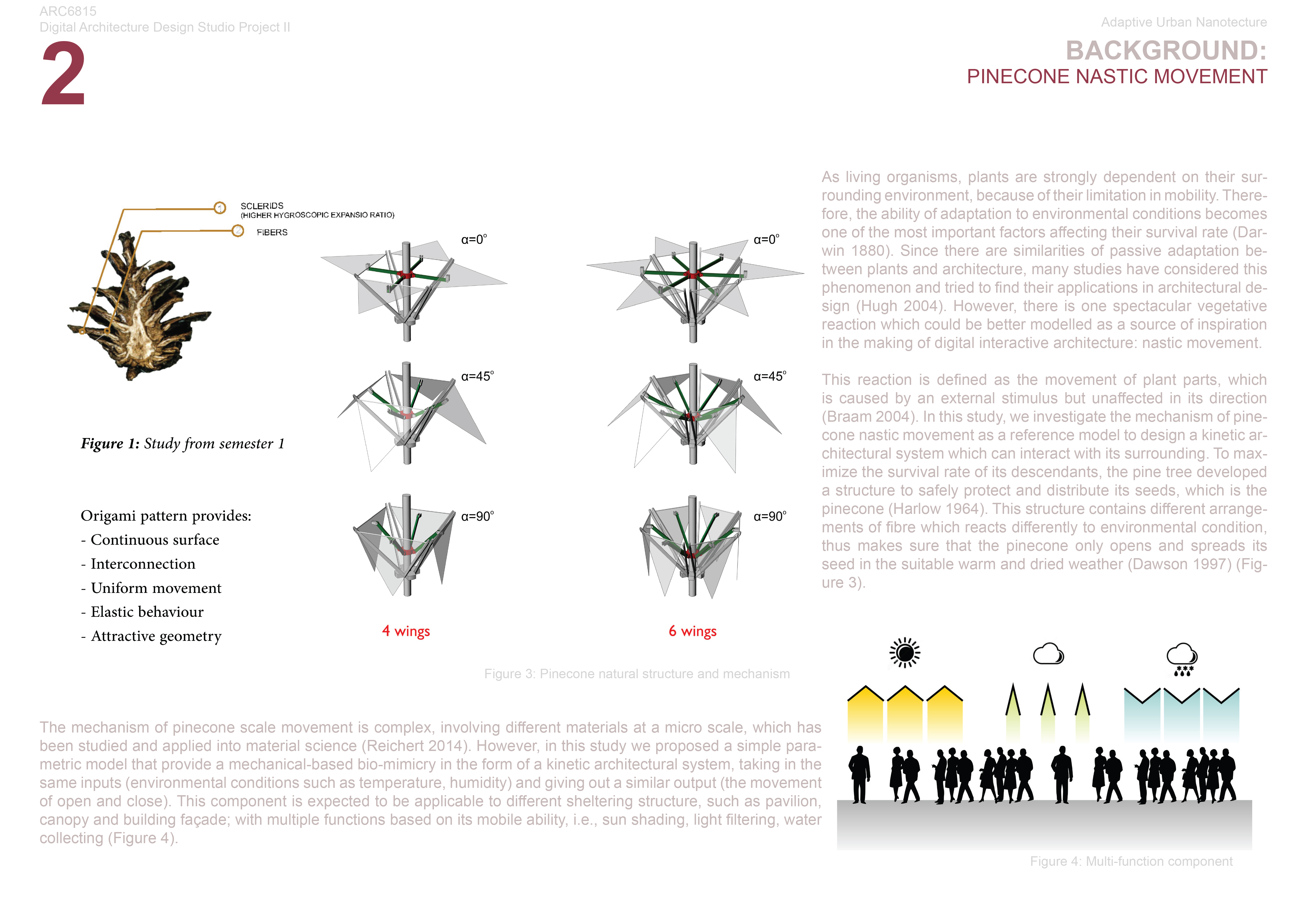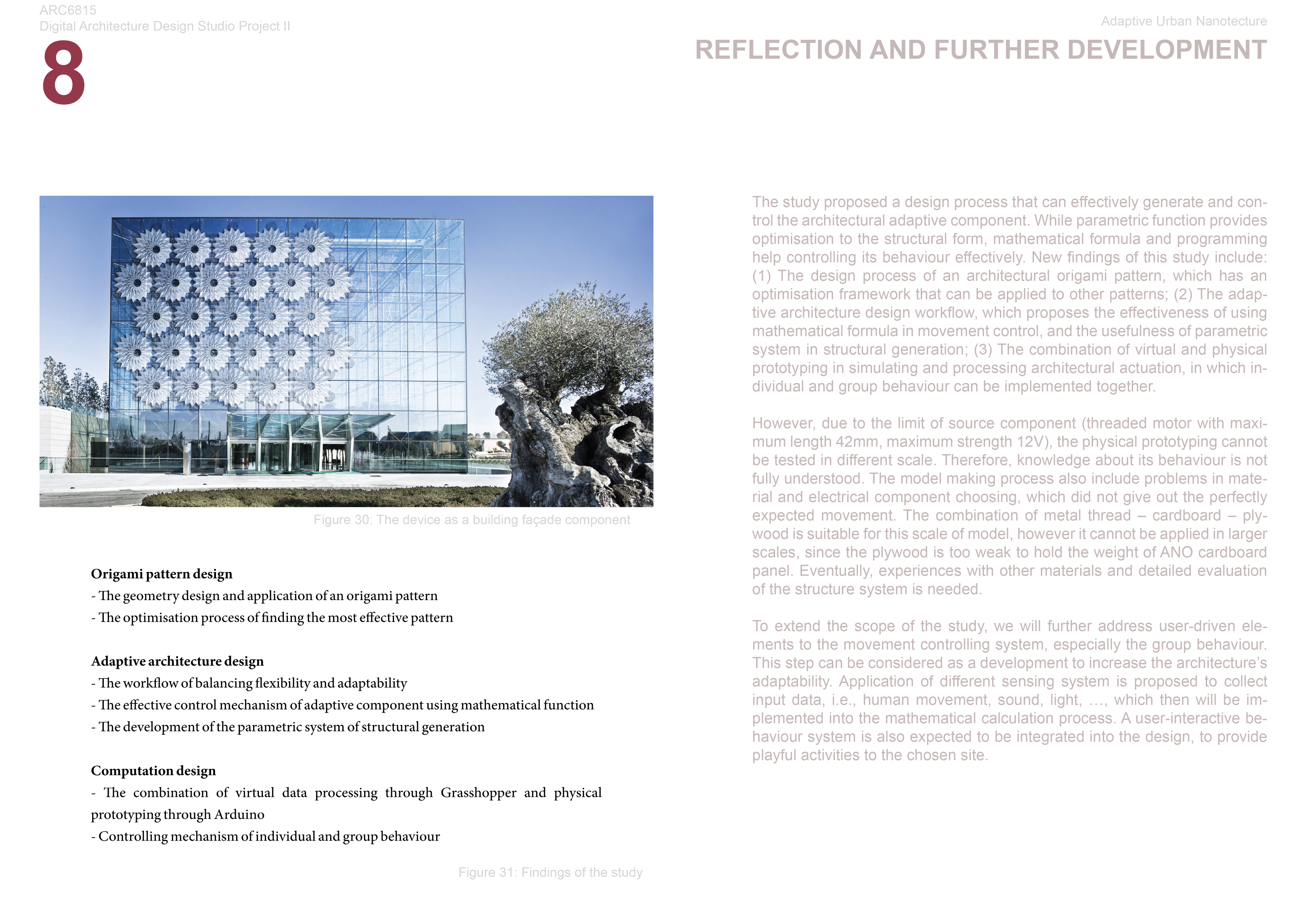 To reduce the generating time and resources, a hypothesis is proposed, in which architectural optimisation process need to be limited by sets of rules based on phasic goals, in order to gain efficiency. Following this rule, the design process is proceeded in three phases: (1) Optimisation of geometry based on efficient movement; (2) Maximisation the effectiveness of the controlling mechanism and (3) Balancing of adaptability and flexibility based on site-analysis.