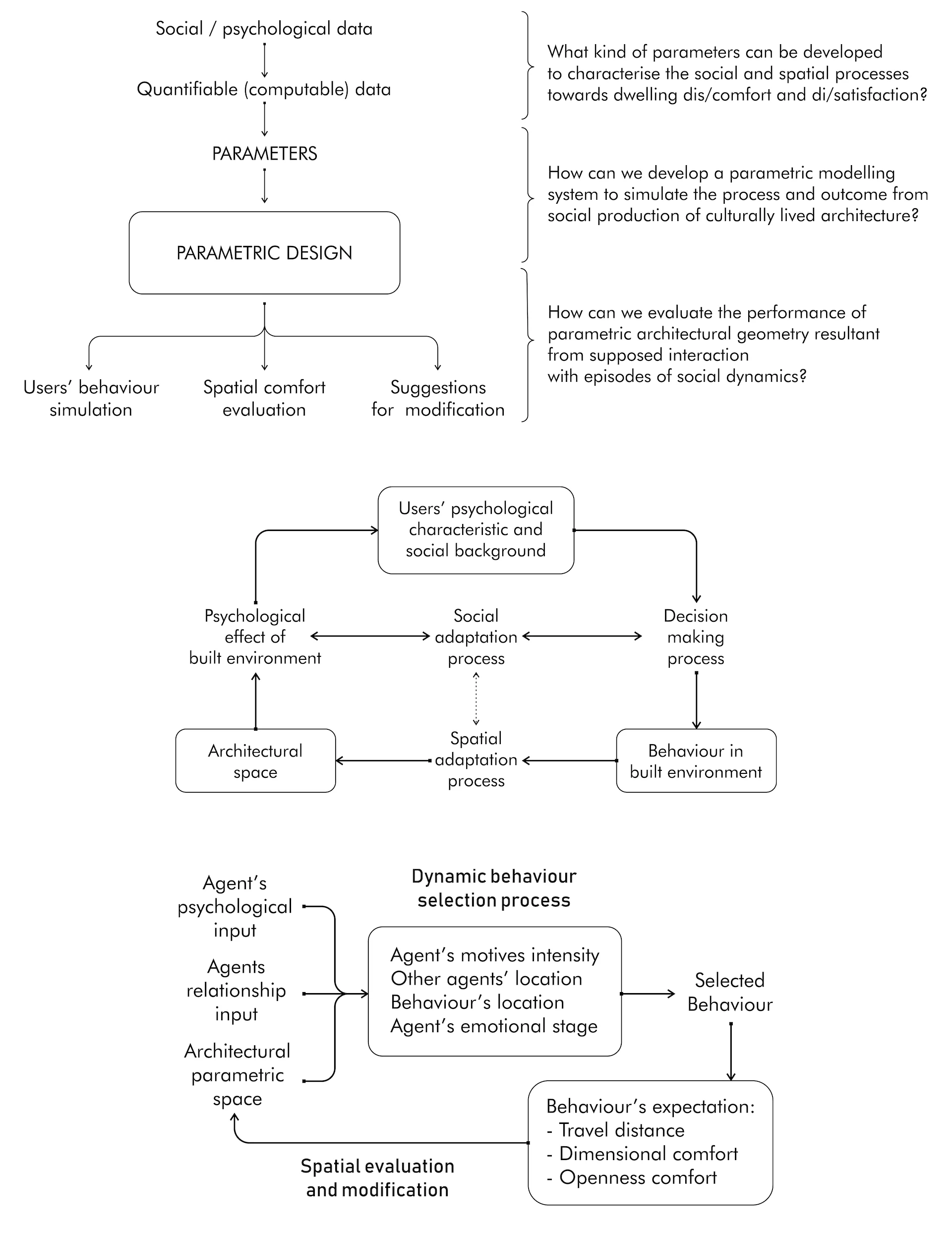 The recently developments in computational design methods have addressed the need of translating reference data into digital input. Therefore, the uneasily quantifiable data such as social and cultural references receive much less attention, thus resulting in a gap in the literature, namely, poor understanding of how people live and adapt buildings designed by architectural professions. In contrast, there are potential applications for social and cultural evaluation in architectural social science and environmental psychology, such as systematic frameworks that can be used to translate human psychological traits (personal, social and cultural) into digitised data. In Computer Science, a similar view exists in the agent-based modelling sub-area.