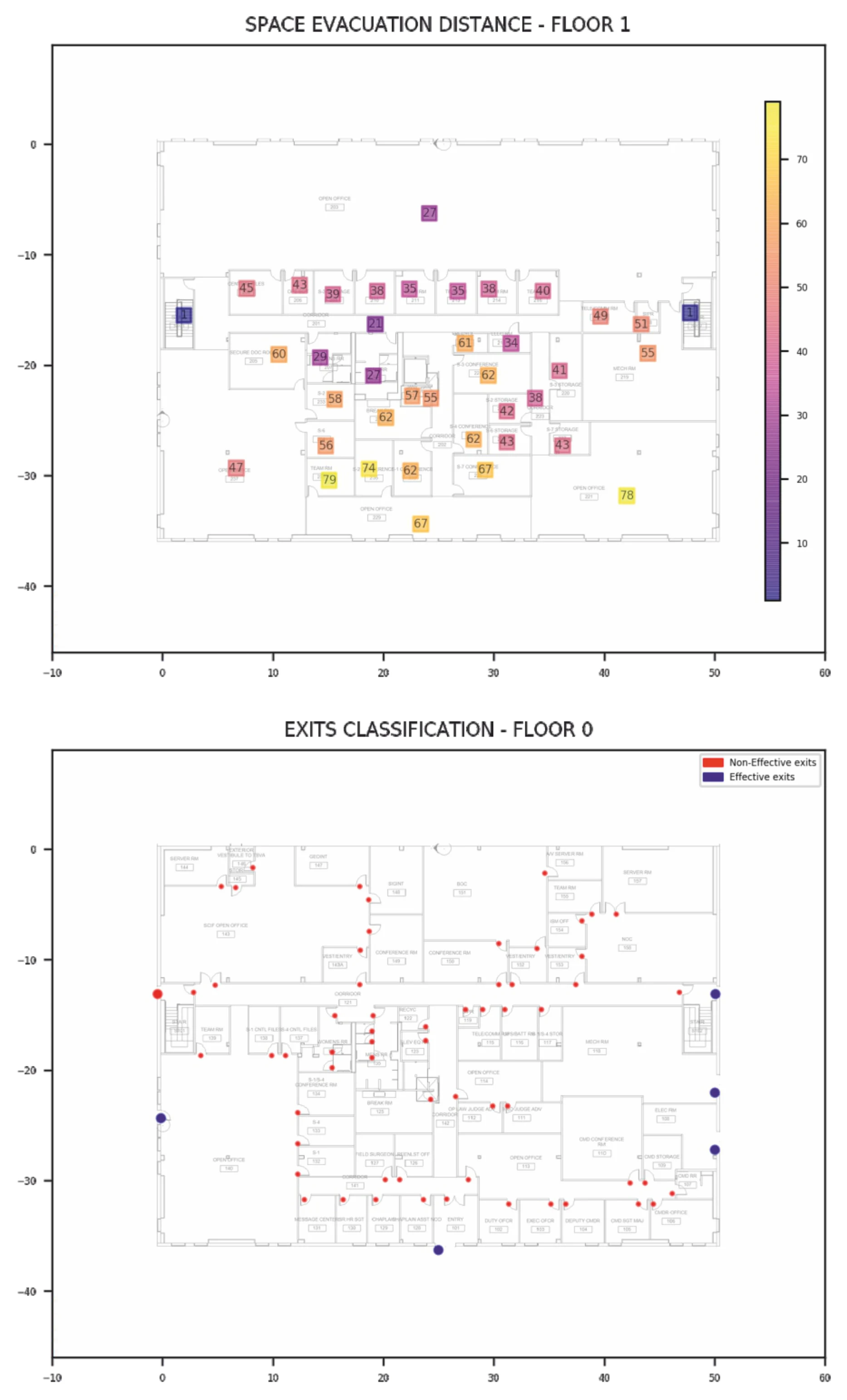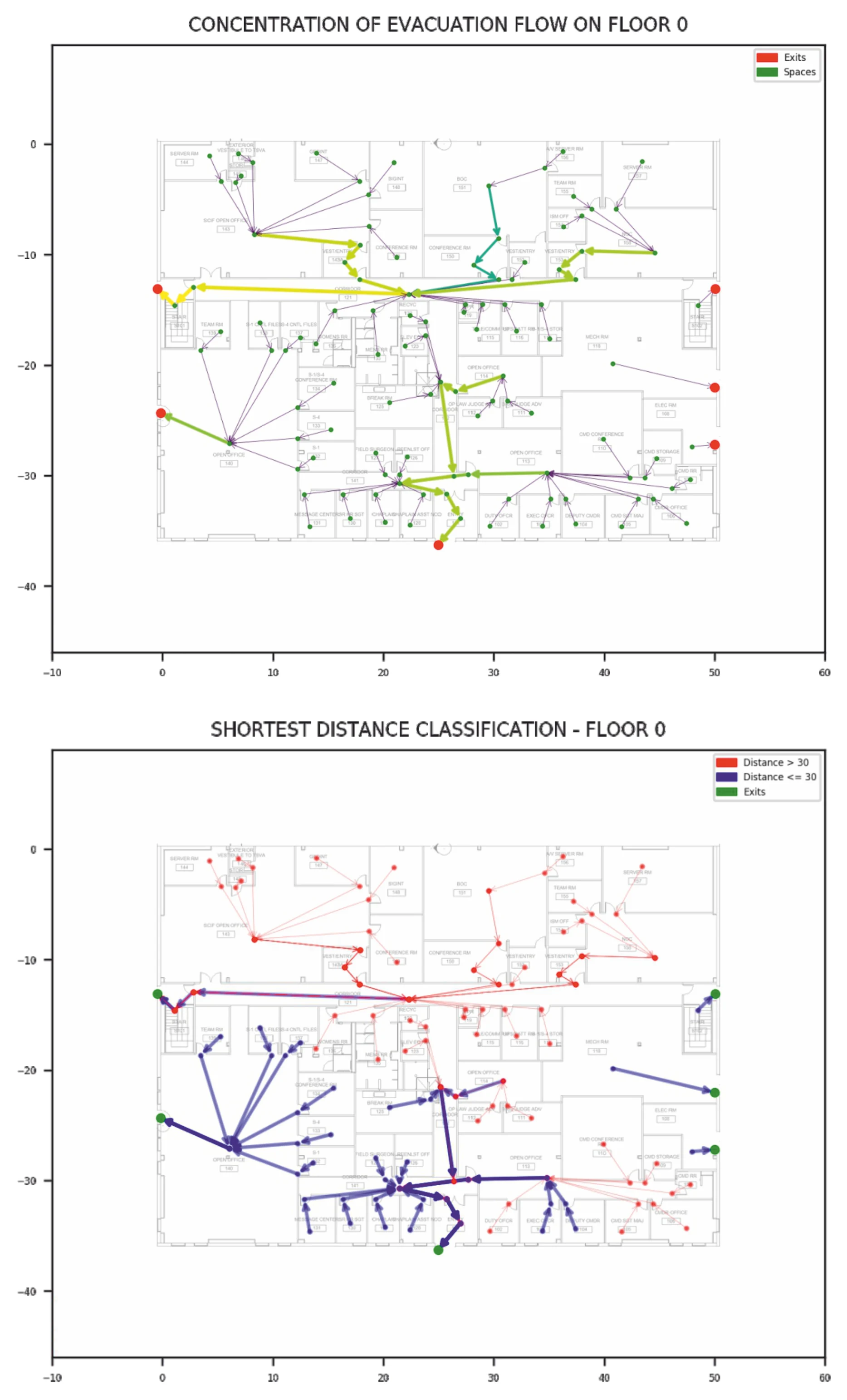 (2) Using Voronoi centreline-based network model to modify long shaped and vertical spaces, such as corridors and stairs to avoid wall-passing and spider-net route. Add additional nodes into the network.